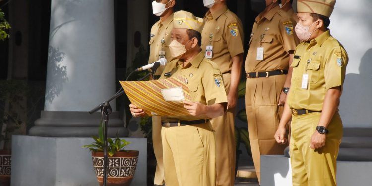 Terlebih saat ini suasana politik khususnya di wilayah pedesaan sudah mulai memanas. ASN harus bisa mendinginkan suasana, menjaga kenyamanan dan ketentraman serta tidak mudah terpengaruh dengan banyaknya isu-isu politik. Demikian disampaikan pada apel pagi karyawan karyawati Setda, Senin (27/6/22) di Halaman Gedung A Setda.