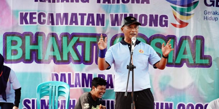 Bertempat di Pasar Hewan Kecamatan Winong, Pj Bupati Pati Henggar Budi Anggoro, Kamis (27/10), berkesempatan untuk menghadiri acara peringatan Hari Sumpah Pemuda yang dilaksanakan oleh Karang Taruna Kecamatan Winong.
