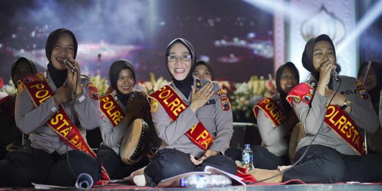 Di tengah tugasnya menjaga keamanan dan kondusifitas Kabupaten Pati, para personil Polresta Pati itu rupanya mampu terampil dalam bermain rebana.