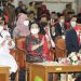 Penjabat Bupati Pati Henggar Budi Anggoro bersama Ketua Tim Penggerak Pemberdayaan dan Kesejahteraan Keluarga (TP PKK) Kabupaten Pati Faiza Henggar Minggu (29/1), menghadiri gebyar pasar murah bahan pokok di Desa Ngawen Kecamatan Cluwak.
