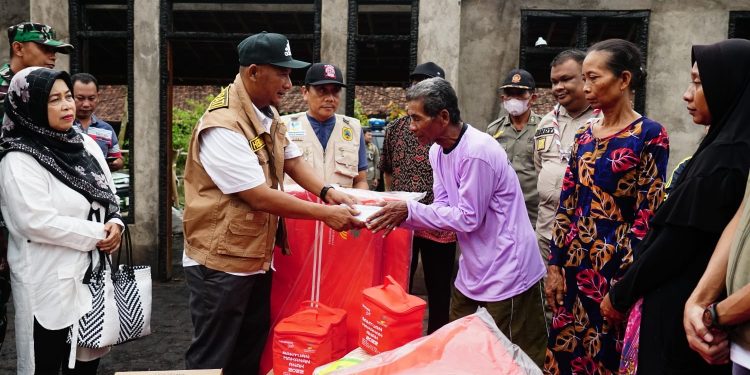 Pj Bupati Pati Henggar Budi Anggoro, Sabtu (4/2), menyerahkan bantuan kebakaran milik seorang warga bernama Legiman, yang berada di Dukuh Sambirowo, Desa Pucakwangi RT 5 RW 4, Kecamatan Pucakwangi.