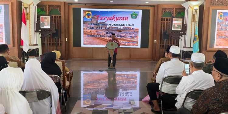 Pj Bupati Pati sampaikan rasa syukurnya bisa kembali bertemu para jamaah haji tahun 2023.