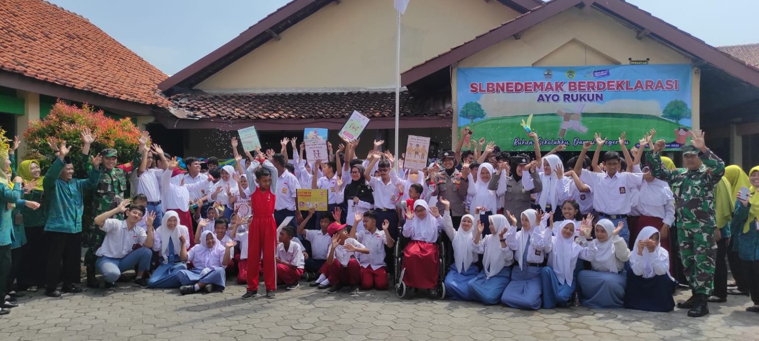 Merespon maraknya kasus bullying atau perundungan di kalangan pelajar, ratusan siswa Sekolah Luar Biasa (SLB) menggelar Deklarasi Ayo Rukun, Selasa (14/11/23).
