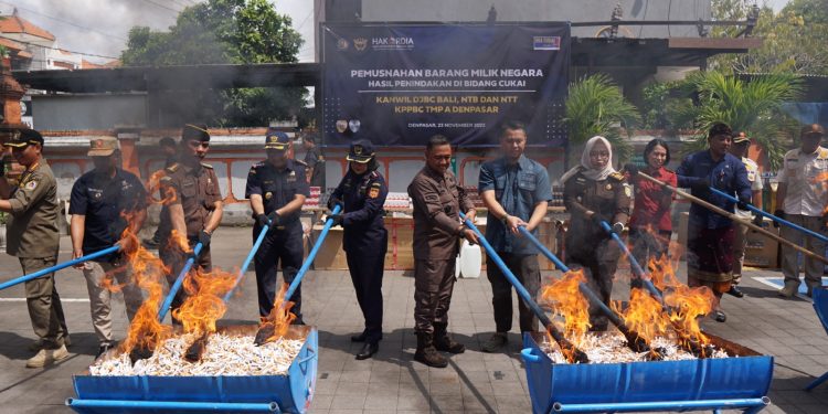 “Dalam kegiatan tersebut, Kanwil Bea Cukai Bali Nusra dan Bea Cukai Denpasar musnahkan hasil tembakau berupa rokok sebanyak 6,5 juta batang dan minuman mengandung etil alkohol (MMEA) jenis arak sebanyak 2,5 juta mililiter dengan total perkiraan nilai barang sebesar 3,6 miliar dan perkiraan kerugian negara sebesar 5,3 miliar,” jelas Kepala Subdirektorat Humas dan Penyuluhan Bea Cukai, Encep Dudi Ginanjar.Selasa (28/11/23).