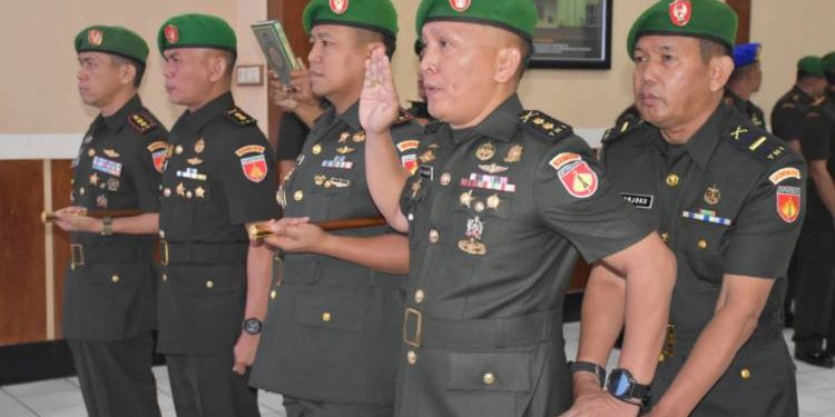 Komandam Korem 073/Makutarama Kolonel Inf Purnomosidi, S.I.P., M.A.P. memimpin upacara serah terima jabatan dua pejabat Komandan Kodim jajaran di aula Makorem. (Kamis, 30/11/2023)