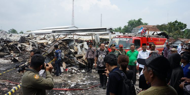 “Yang sabar nggih Pak, Buk, kami semuanya turut berduka dan prihatin atas musibah kebakaran ini. Pemerintah akan terus mendampingi agar pedagang bisa segera kembali berjualan,” ucap Bupati.