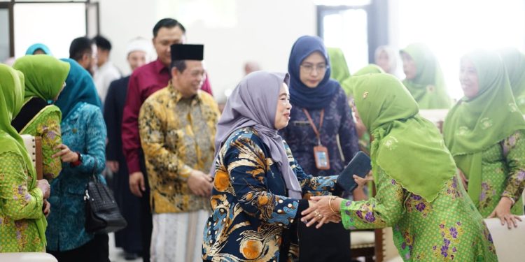 Pj Ketua Tim Penggerak PKK Kabupaten Pati Faisa Henggar, Kamis (29/2), menghadiri acara pelayanan Keluarga Berencana (KB) dalam rangka bhakti sosial Muslimat NU Kabupaten Pati bekerja sama dengan DinsosP3AKB Pati dan Rumah Sakit Assuyuthiyyah Pesantren Raudlatul Ulum Guyangan, Kecamatan Trangkil.