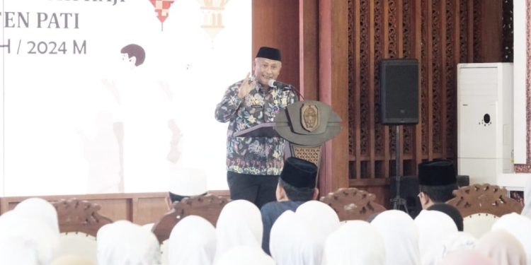 Pada kesempatan tersebut, Pj Bupati Henggar didampingi oleh Kepala Kantor Kementerian Agama Kabupaten Pati, Ali Arifin, dan para pejabat Forkopimda Kabupaten Pati.