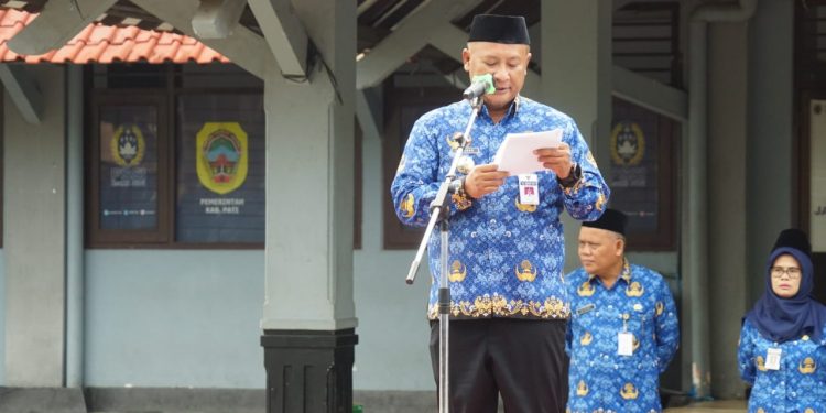 PJ Bupati Pati, Henggar Budi Anggoro memimpin Upacara Peringatan Hari Otonomi Daerah (Otoda) XXVIII Tahun 2024 di Halaman Stadion Joyokusumo, Kamis (25/4/2024).