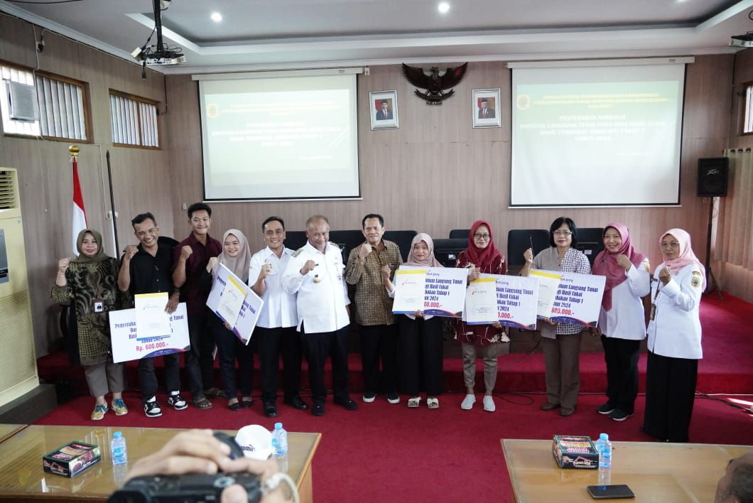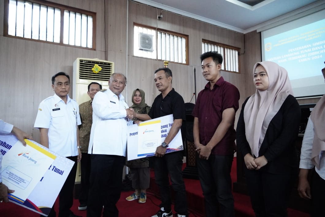 Bertempat di Ruang Penjawi Setda, Sekretaris Daerah (Sekda) Pati Jumani, Rabu (26/6), menyerahkan Bantuan Langsung Tunai (BLT) Dana Bagi Hasil Cukai Hasil Tembakau (DBHCHT) Tahap 1 tahun 2024 kepada buruh tani tembakau dan buruh pabrik rokok yang tinggal di Kabupaten Pati.