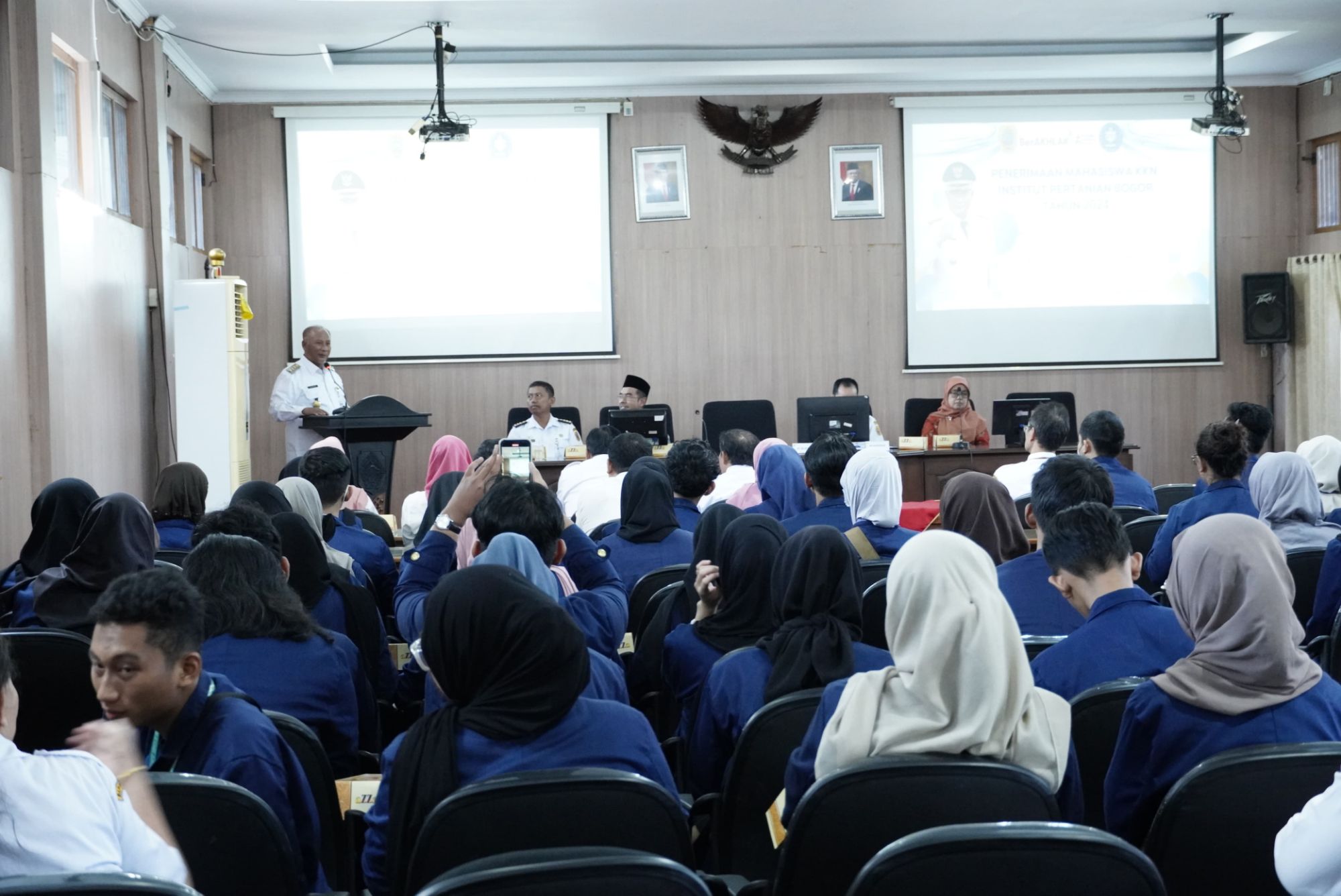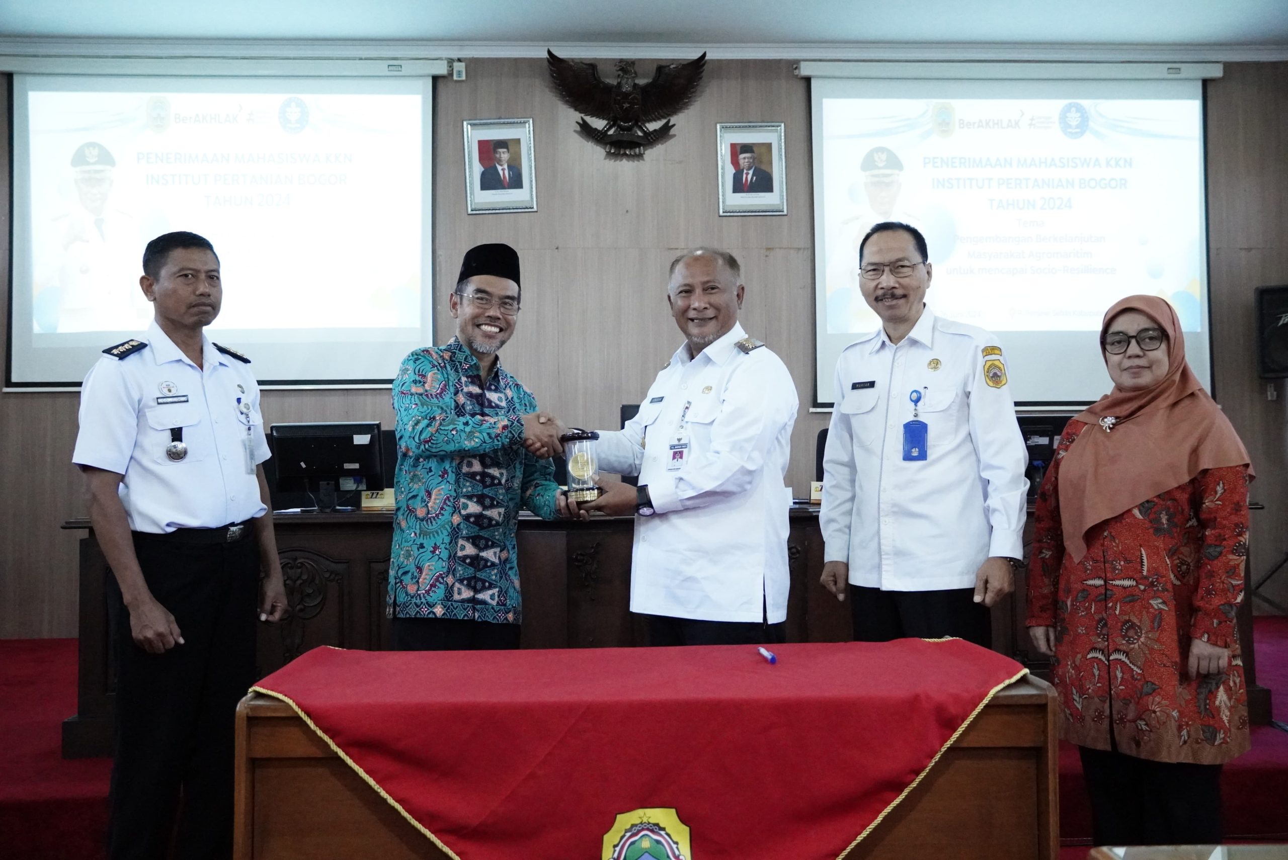Pj Bupati Pati, Henggar Budi Anggoro, didampingi Plt. Kepala Bapperida Kabupaten Pati, menghadiri acara penerimaan mahasiswa KKN Inovasi Institut Pertanian Bogor (IPB) Tahun 2024 di ruang Penjawi Setda Pati.