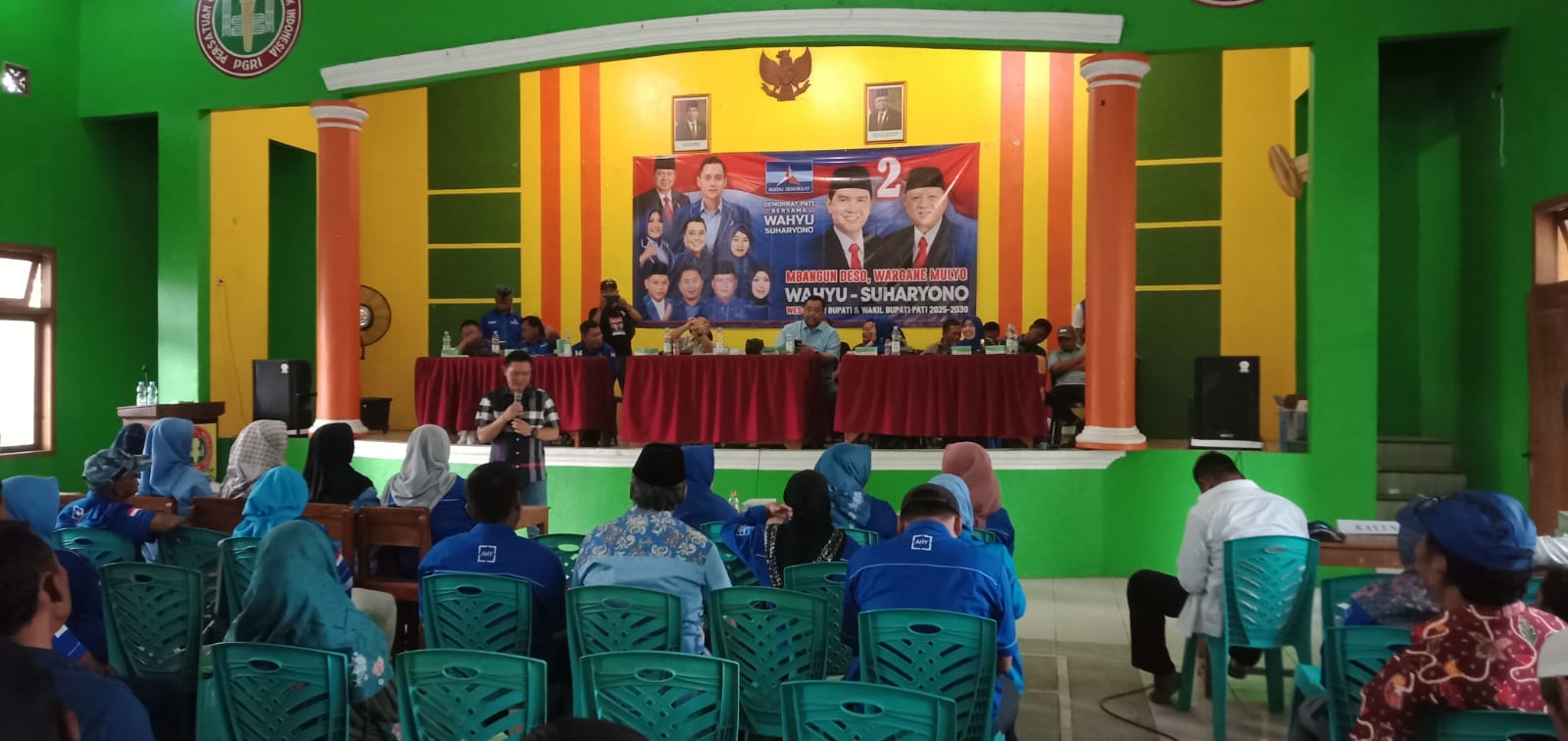 Dewan Pimpinan Cabang (DPC) Partai Demokrat Kabupaten Pati menggelar konsolidasi pemenangan Pilkada 2024. Konsolidasi dilakukan demi mewujudkan kemenangan Pasangan Calon (Paslon) Bupati dan Wakil Bupati Wahyu Indriyanto dan Suharyono. Kegiatan ini digelar di gedung PGRI Sukolilo Kecamatan Sukolilo Kabupaten Pati. Kamis (26/09/24) Siang.