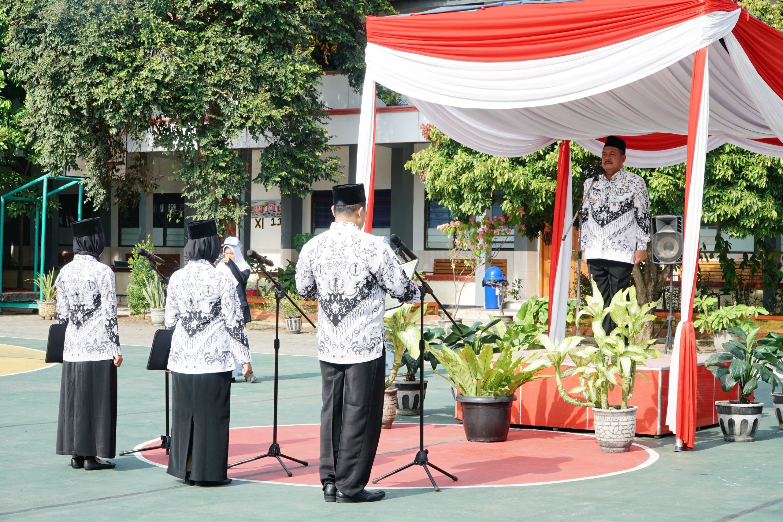 Penjabat (Pj) Bupati Pati Sujarwanto Dwiatmoko, Kamis (31/10), memimpin upacara peringatan Hari Guru Nasional dan HUT Persatuan Guru Republik Indonesia (PGRI) ke-79 di Lapangan SMA PGRI 1 Pati.