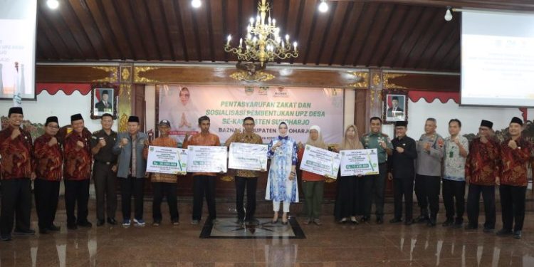 Badan Amil Zakat Nasional (Baznas) Kabupaten Sukoharjo menyalurkan bantuan senilai Rp401.388.500 kepada 215 penerima manfaat melalui lima program unggulan. Penyaluran bantuan dilaksanakan bersamaan dengan sosialisasi pembentukan Unit Pengumpul Zakat (UPZ) Desa se-Kabupaten Sukoharjo, di Pendopo Graha Satya Praja Sukoharjo, Kamis (6/2/2025).