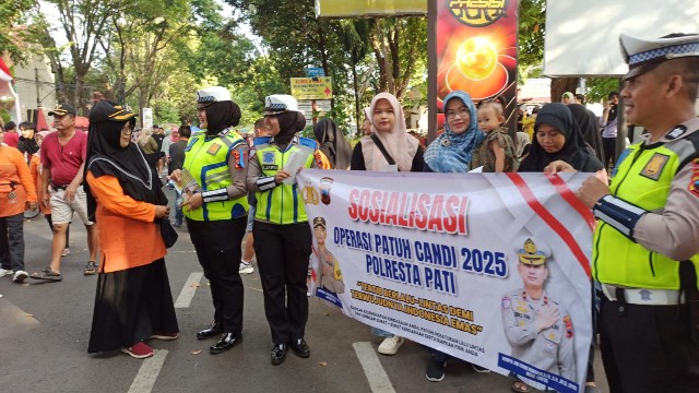 Tertib Lalu Lintas, Satlantas Polresta Pati Sosialisasikan Operasi Patuh Candi 2025 di CFD