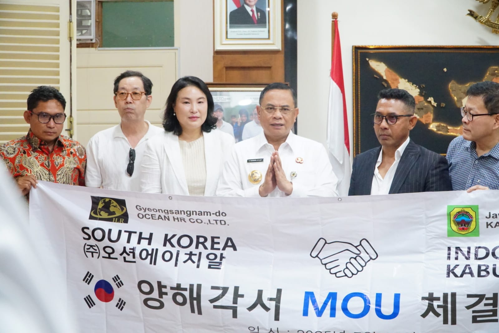 “Saya bersama pihak perwakilan Tim Korea Selatan di bidang ketenagakerjaan sedang menandatangani MoU untuk pemberangkatan calon tenaga kerja dari Indonesia ke Korea Selatan,” ujar Bupati.