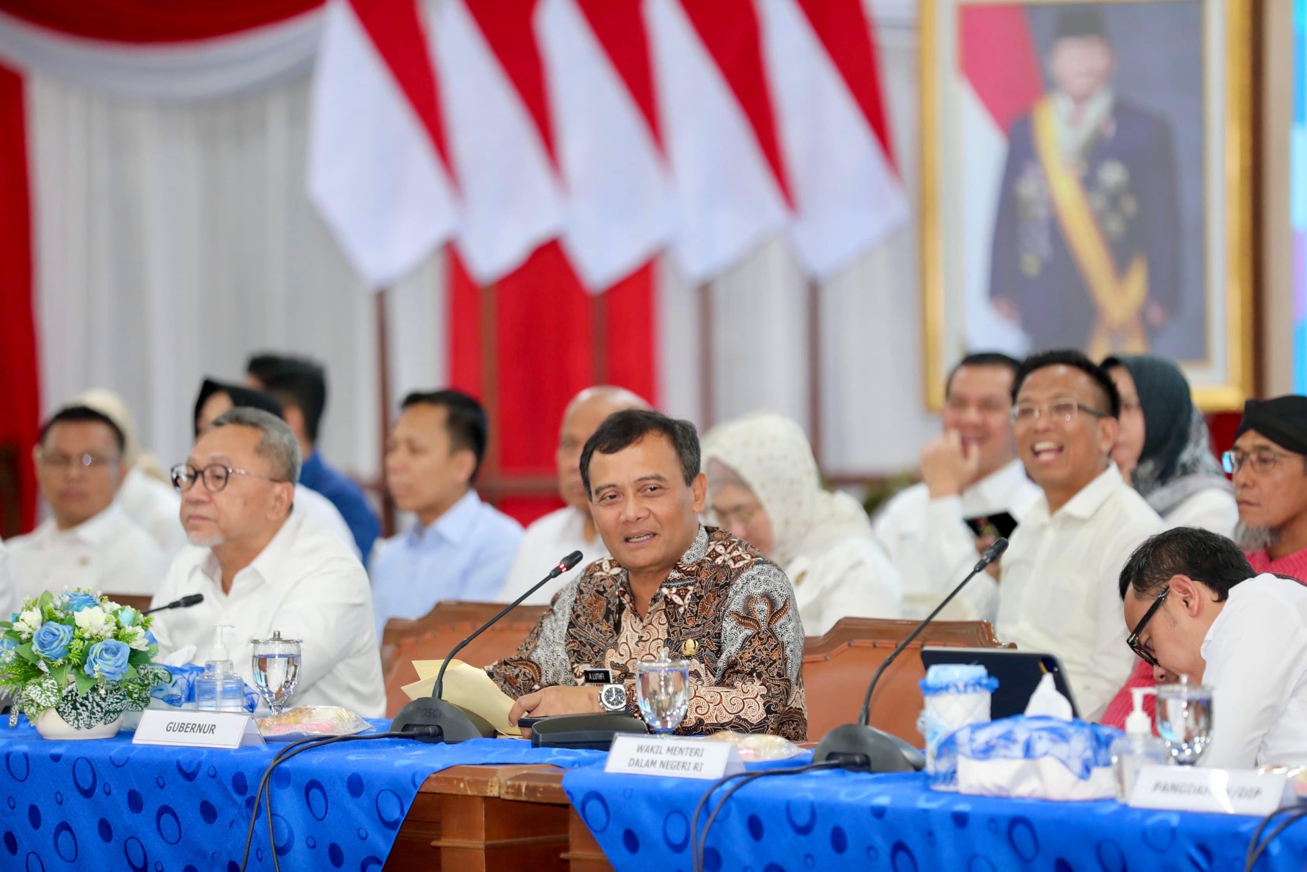 Rapat Konsolidasi Satgas Percepatan Operasionalisasi Koperasi Desa/Kelurahan Meeah Putih ini juga dihadiri oleh Menko Bidang Pangan Zulkifli Hasan, Menkop Budi Arie, Wamendagri Bima Arya, serta perwakilan BUMN dan BUMD mitra. Selain itu juga dihadiri oleh 35 kepala daerah di Jateng.