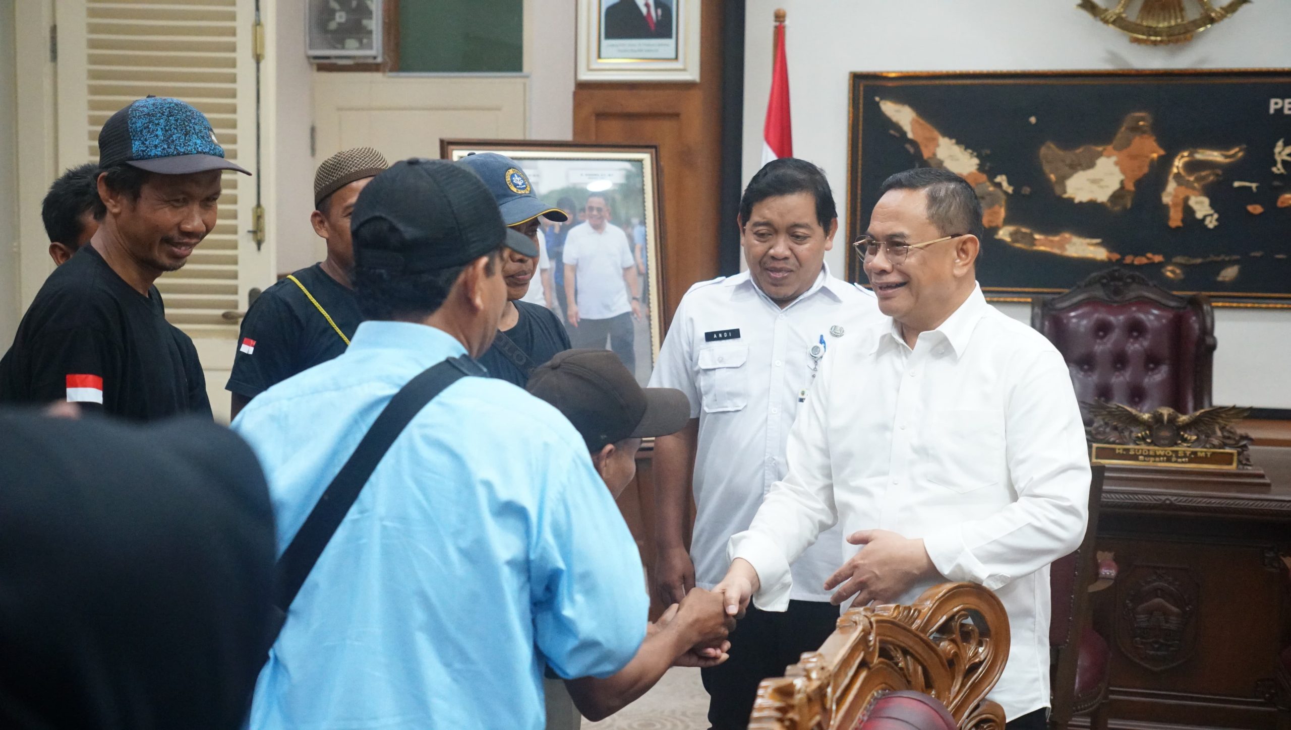 Bupati Pati, Sudewo, menerima audiensi dari Kelompok Tani Desa Ronggo, Kecamatan Jaken, yang dipimpin oleh Sudargo. Pertemuan berlangsung di Kantor Bupati Pati dan membahas terobosan pemanfaatan lahan kering agar lebih produktif, khususnya melalui penanaman padi dan pengembangan komoditas tembakau.