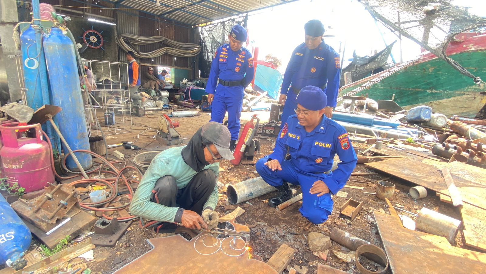 Program tersebut diwujudkan melalui patroli rutin serta pemberian imbauan langsung kepada para pekerja, khususnya yang melakukan aktivitas berisiko tinggi seperti pengelasan, penggerindaan, hingga pengecatan kapal. Langkah ini dinilai penting untuk meminimalisir potensi kebakaran di kawasan pesisir yang padat aktivitas.