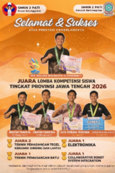 Dengan torehan prestasi ini, SMKN 2 Pati semakin menegaskan posisinya sebagai salah satu sekolah vokasi unggulan yang mampu mencetak lulusan berkualitas dan siap bersaing di dunia industri.