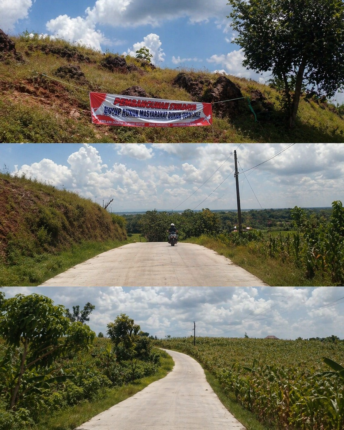 Salah satu tokoh masyarakat Tegal Bale, Wiji, menyampaikan bahwa pembangunan jalan tersebut murni hasil swadaya warga.