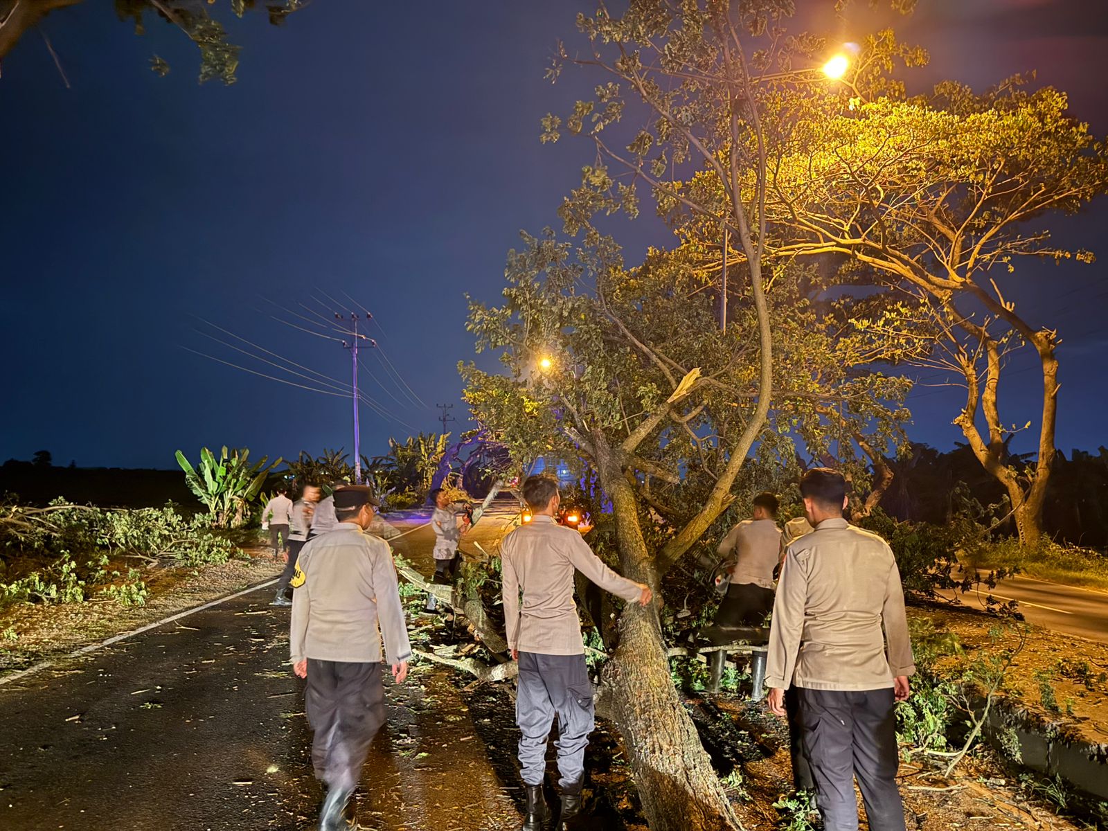 Kegiatan evakuasi dilakukan sekitar pukul 23.00 hingga 23.45 WIB oleh tim siaga bencana Sat Samapta yang dipimpin Danru 1 Subnit Dalmas 1, Brigadir Apta Pribadi, S.H., bersama 13 personel. Mereka bergerak cepat setelah menerima laporan adanya pohon tumbang yang berpotensi membahayakan pengguna jalan.